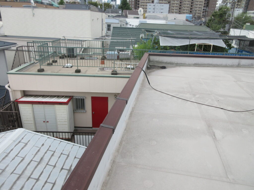 防水を検討されていましたが、まだ補修で行けそうでしたので「5年後に全体やりましょう」と全体延期のご提案をしました。