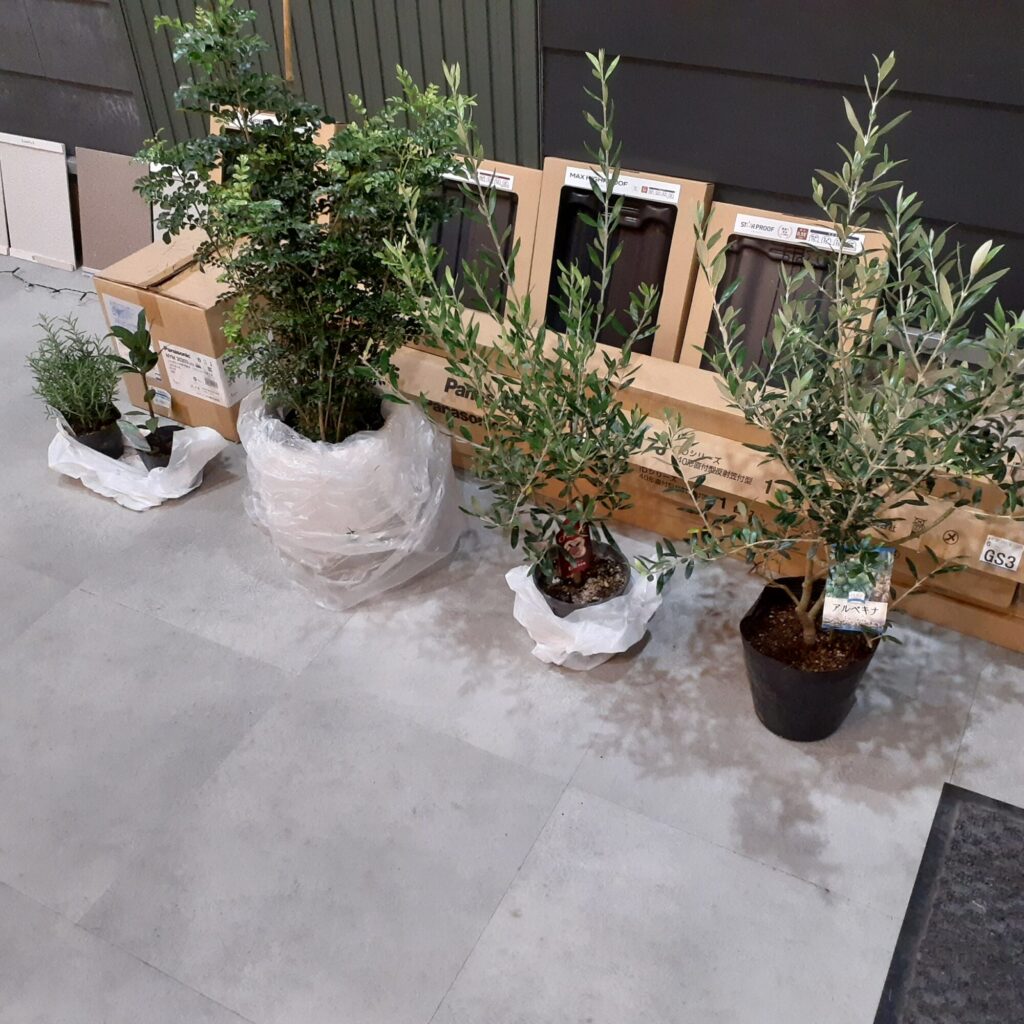 実際に外構工事時で使用する植栽をお客様が選びやすいようにするため、人気のある植栽を事務所内に飾っていく予定です。