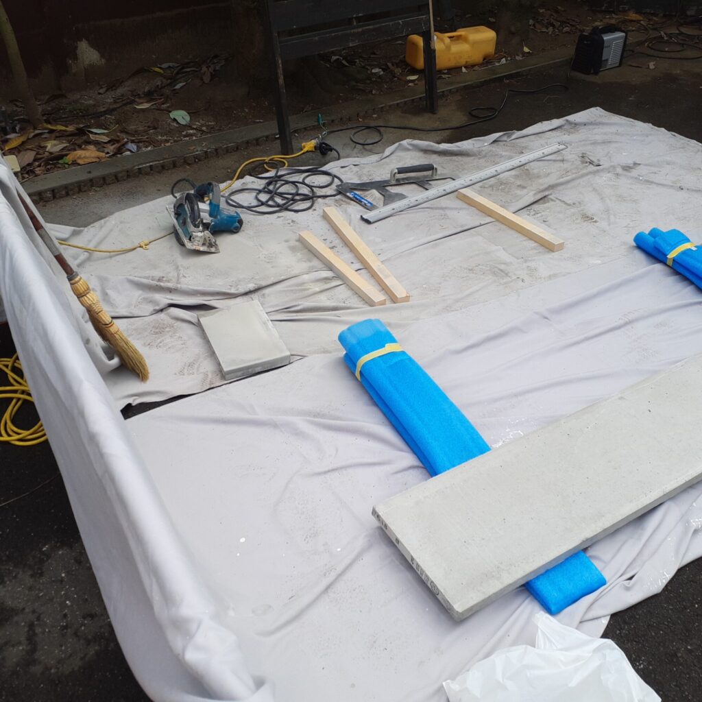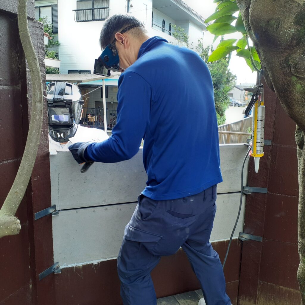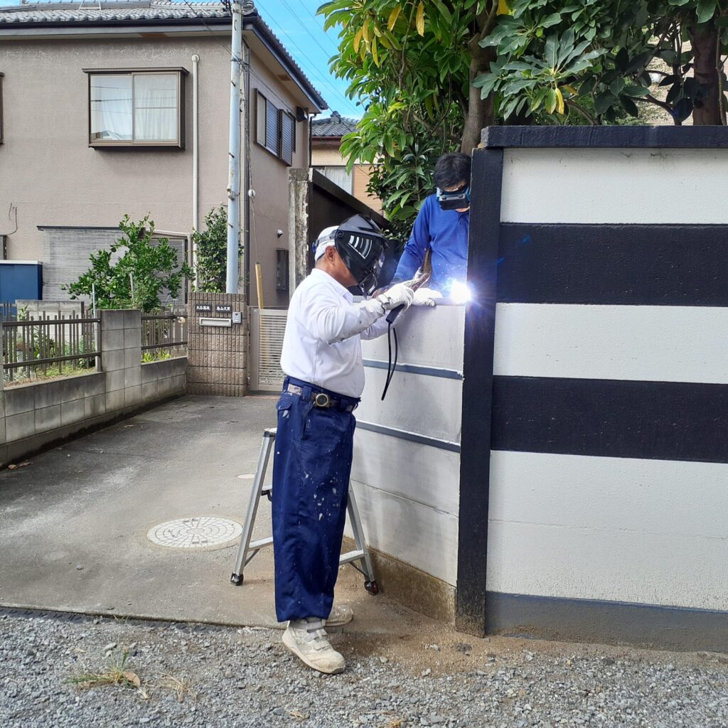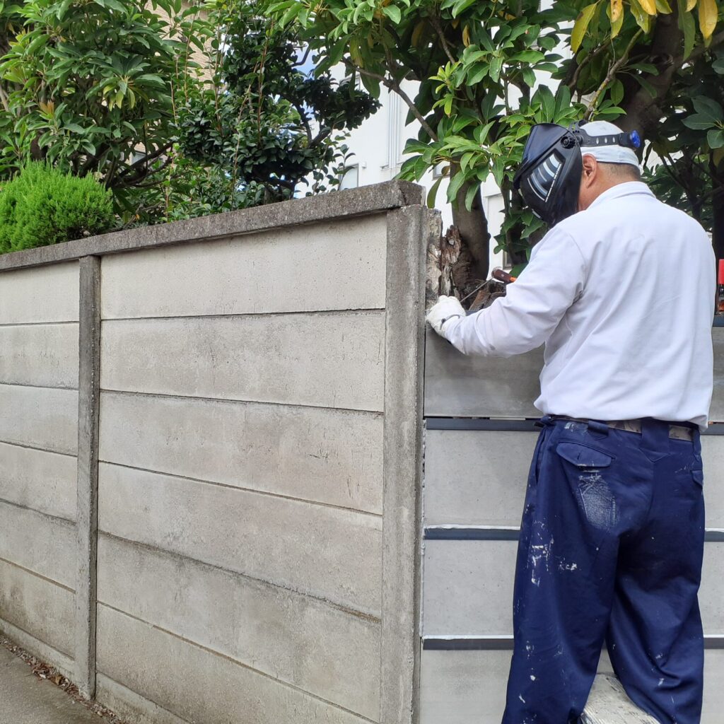 万年塀は危険なので現在ではほとんど使われていないのですが、崩れた部分を補修し鉄骨で溶接補強しました。
