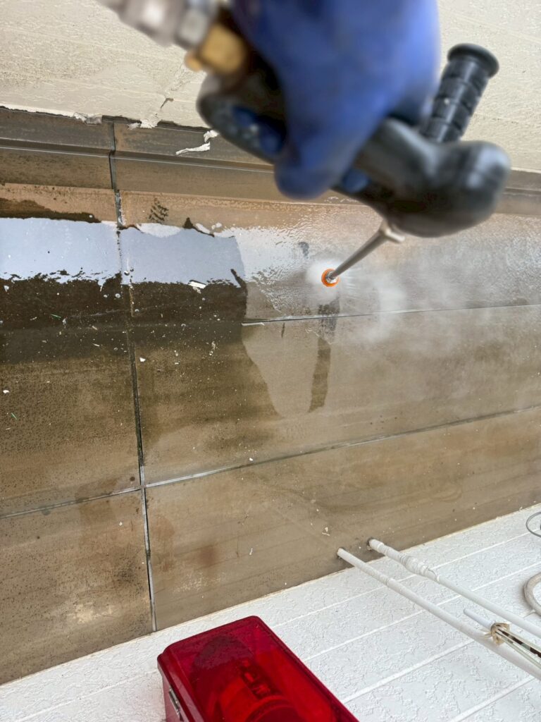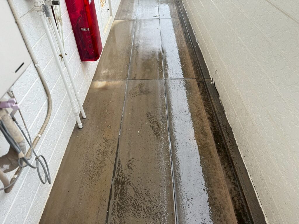 板橋区でベランダ塗装前の高圧洗浄を行いました。