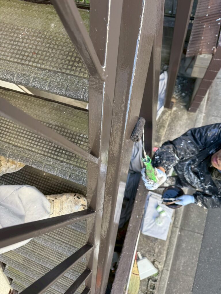 中野区の鉄骨階段塗装本日上塗り作業完了し、全て完了しました。