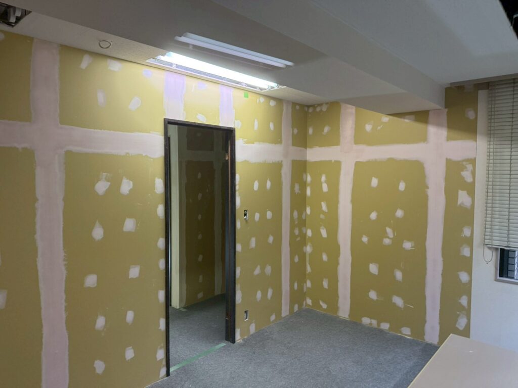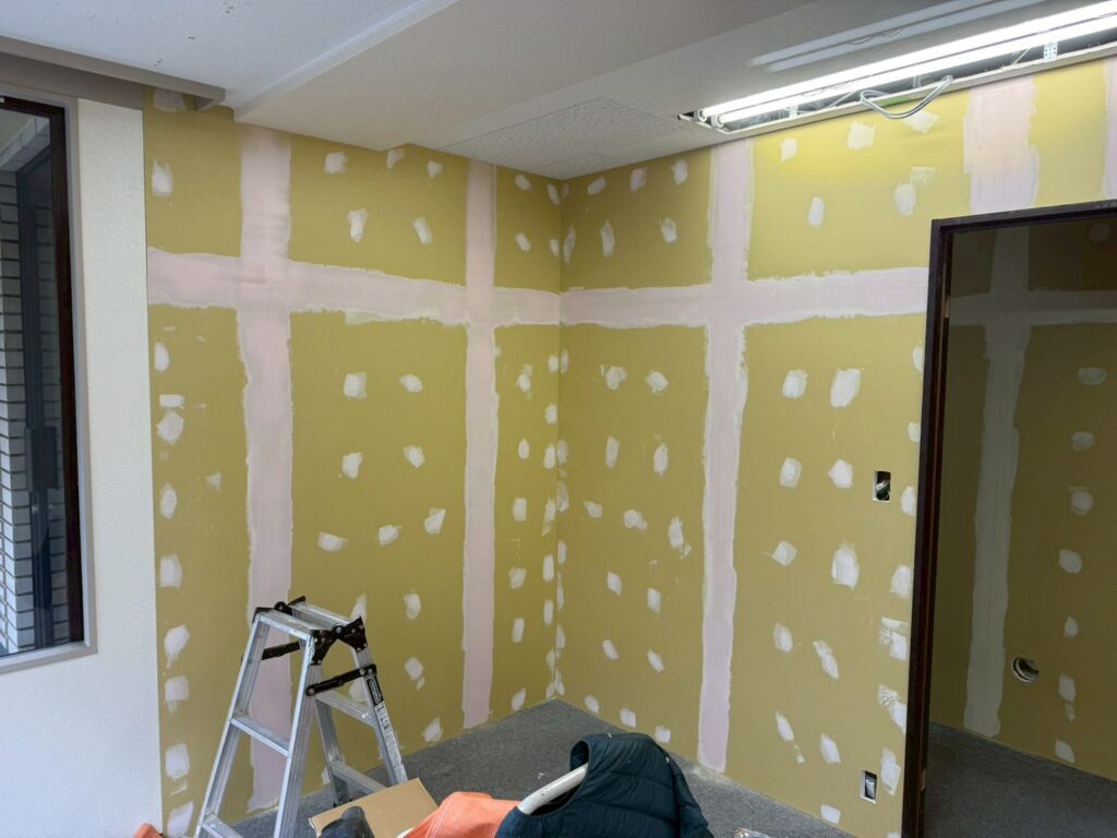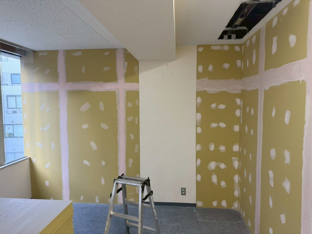本日の作業は日本橋オフィスの室内塗装作業の続きになります。
