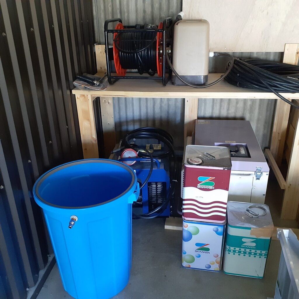 明日は高圧洗浄作業に入りますが、事前に使用機器の動作確認を行いました。
