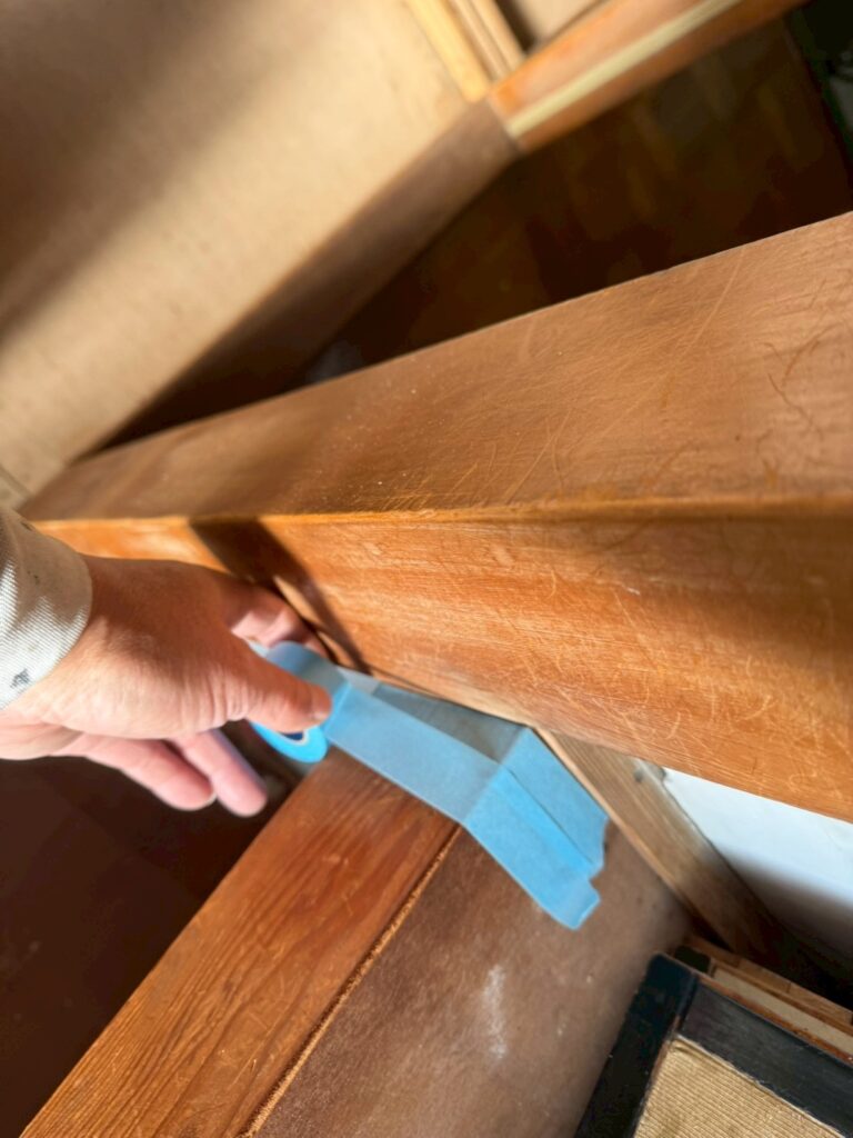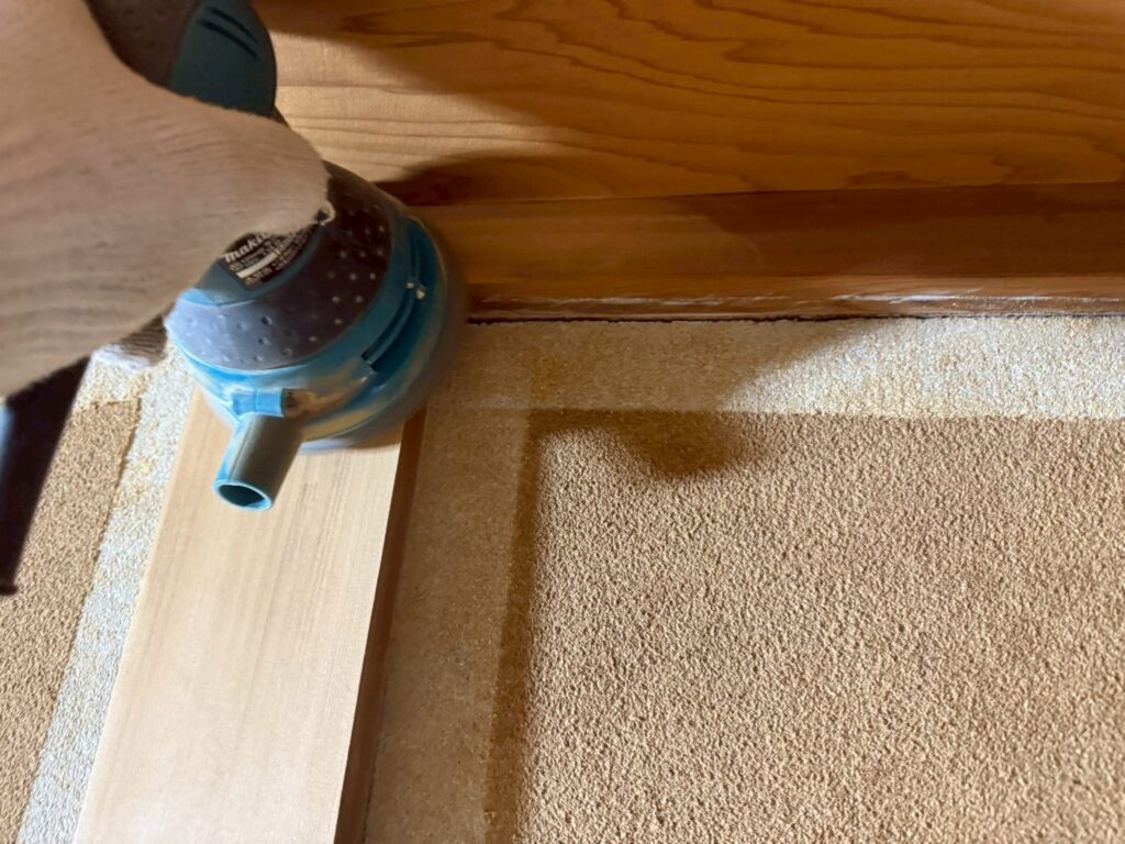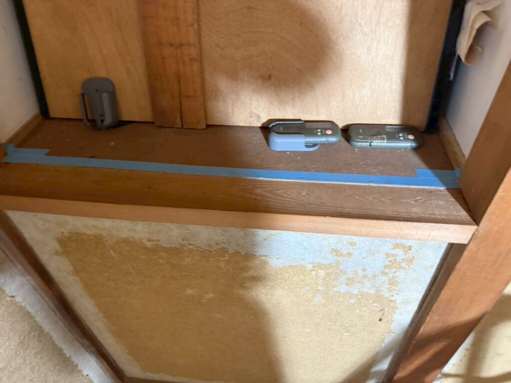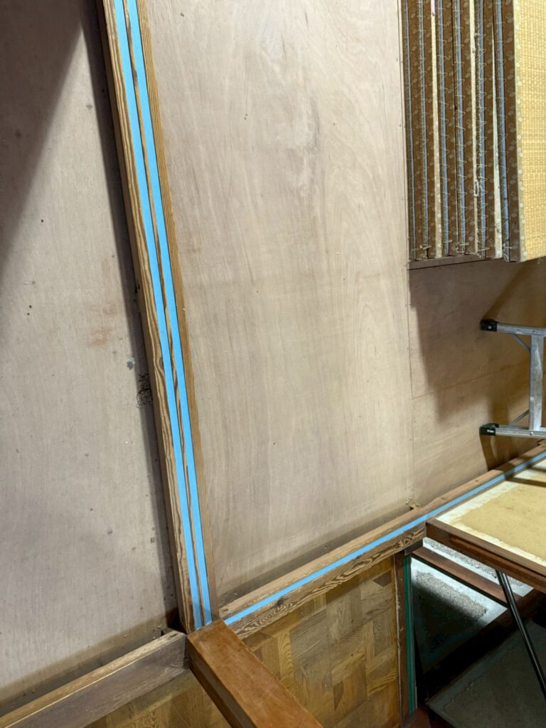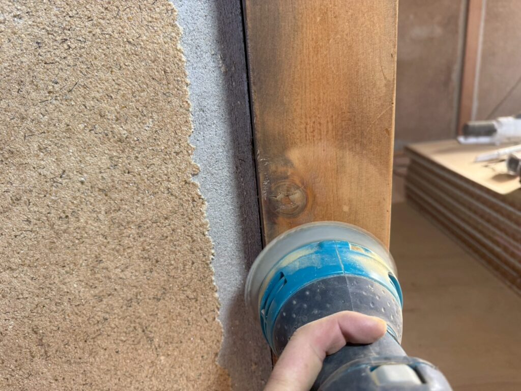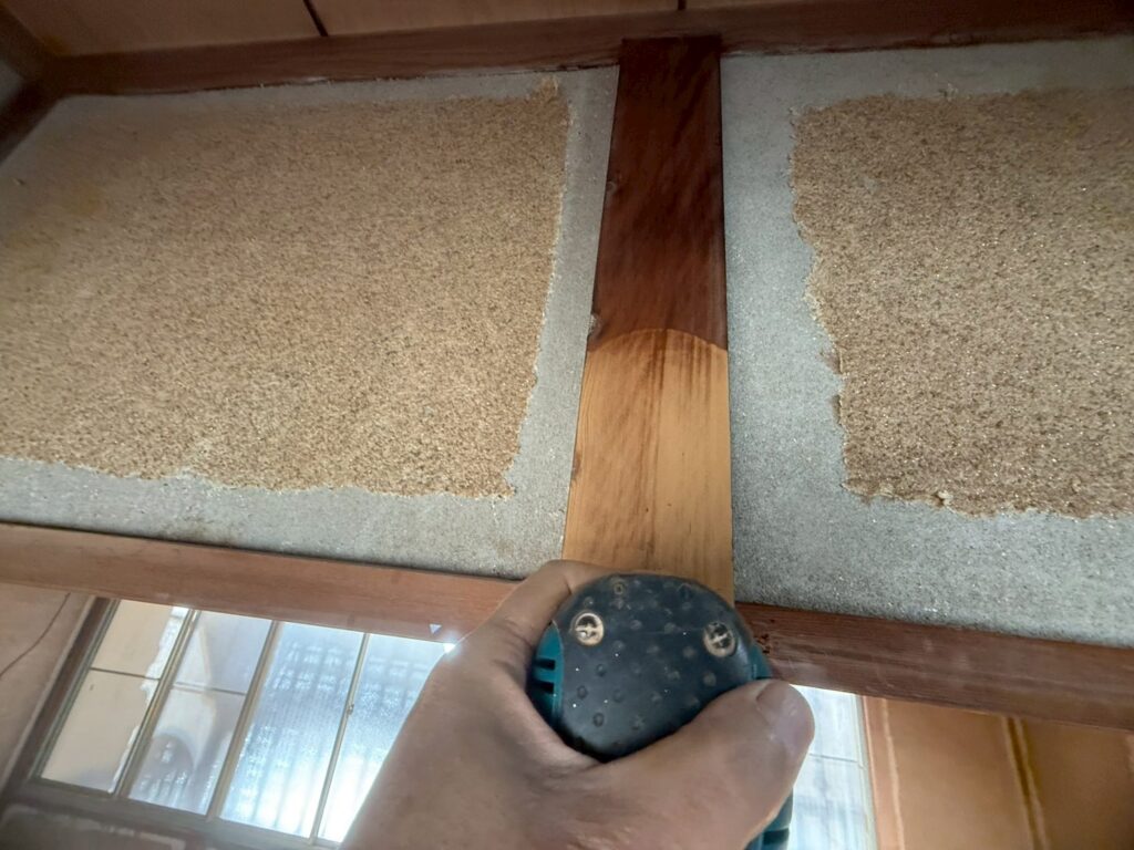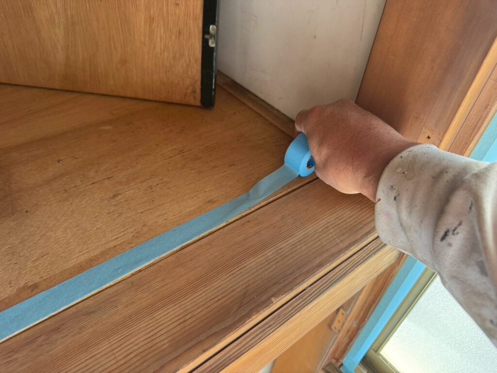 桶川市の戸建て改装工事現場では、引き続き内装塗装を行うための下準備です。