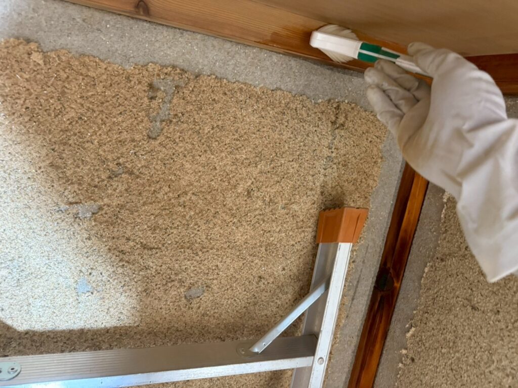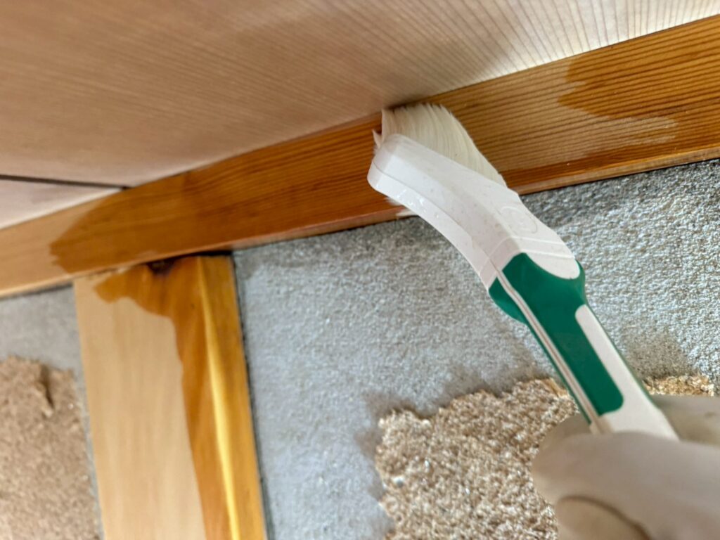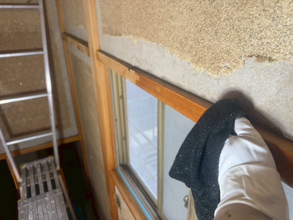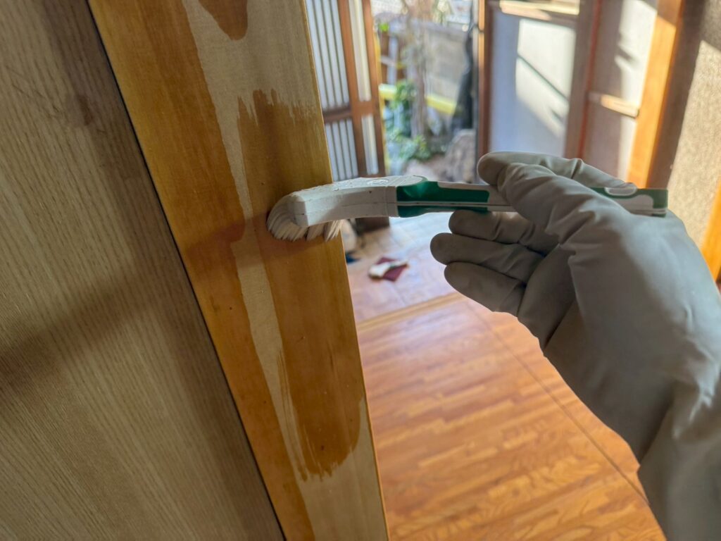 桶川市で行っている戸建ての室内塗装ですが、本日もあく抜き塗装作業を行いました。