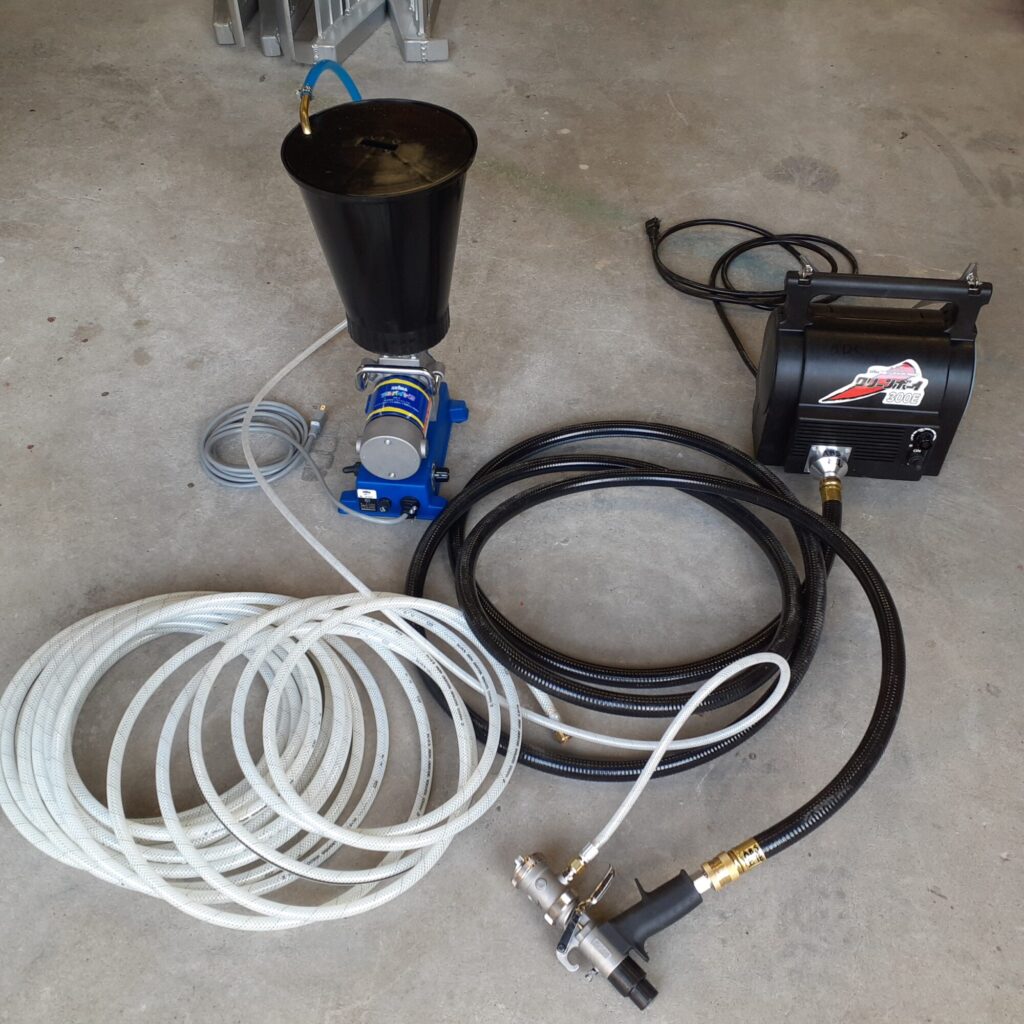 吹付の作業を効率化するため、吹付用の補助機器を導入しました。