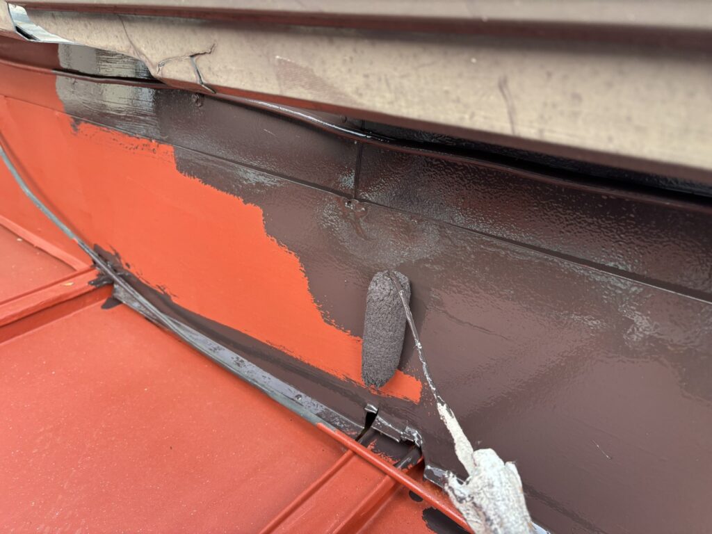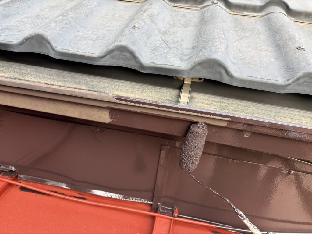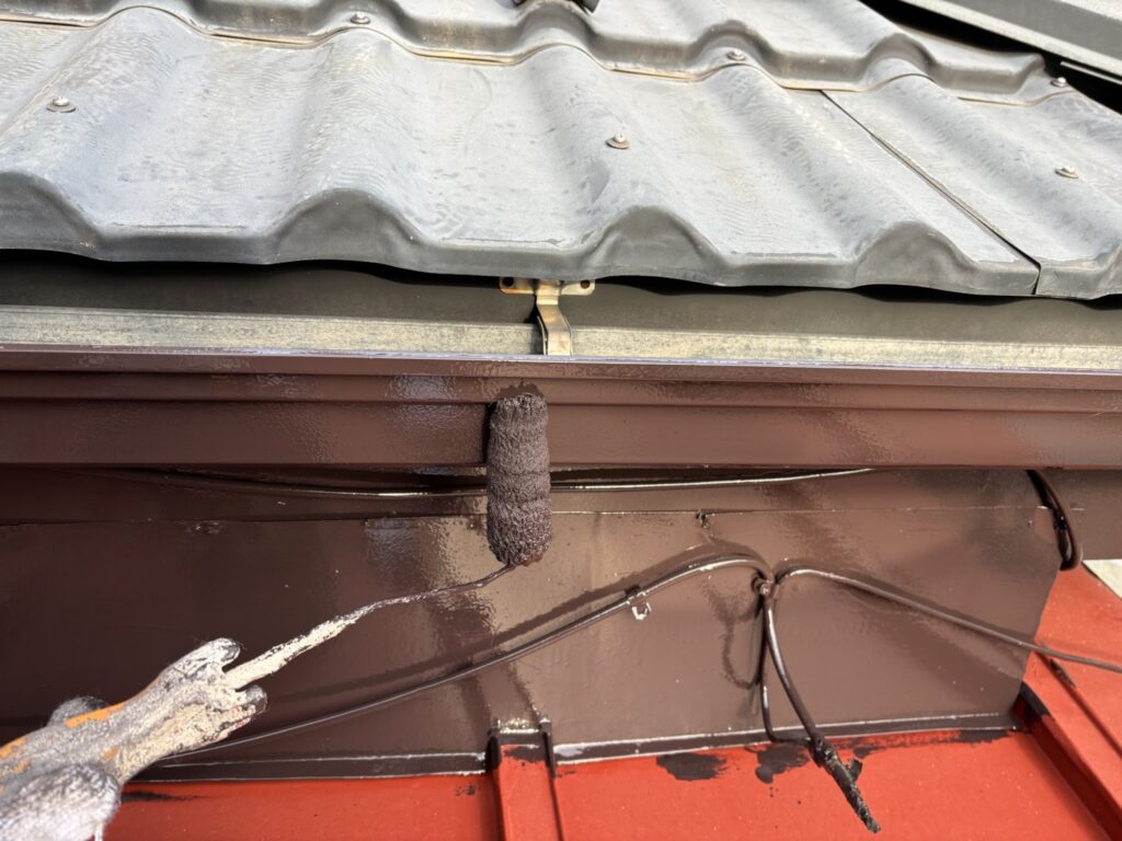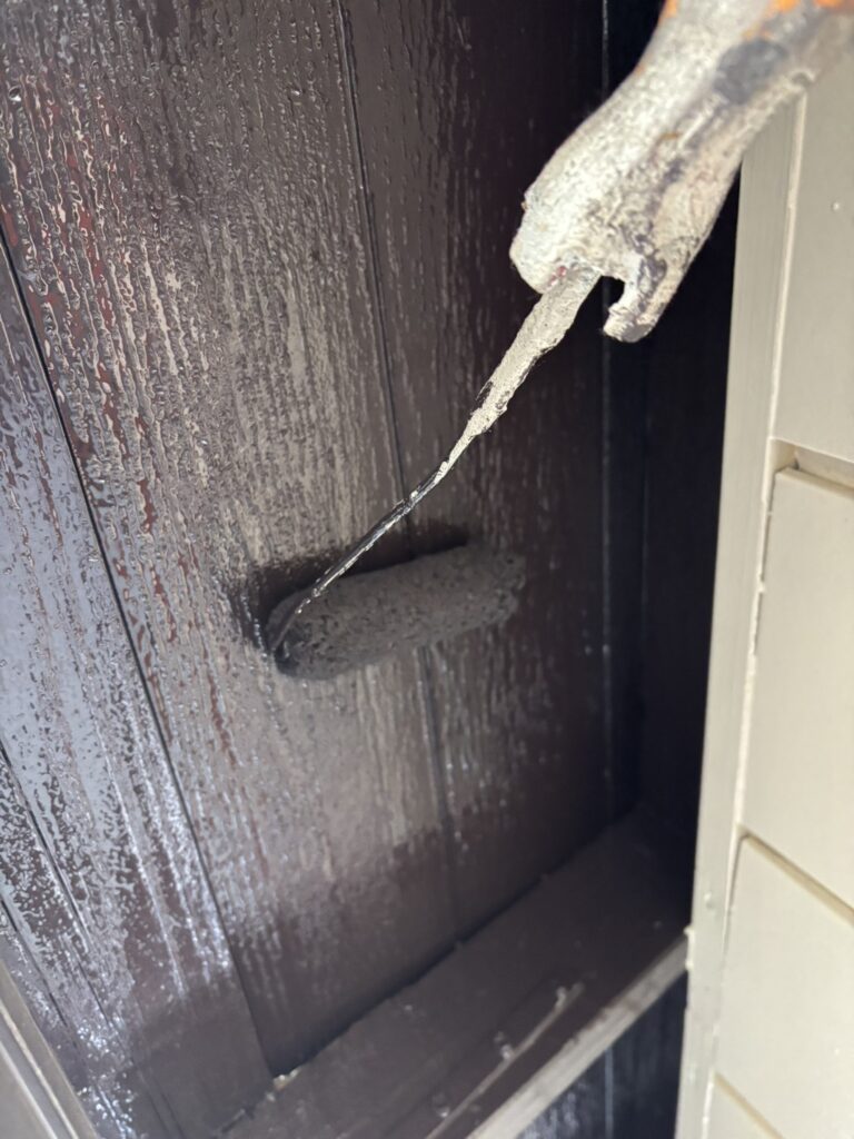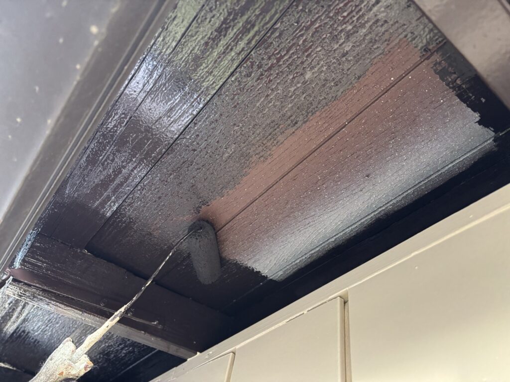 外壁塗装作業が終了し、本日から庇や雨戸などの作業に入りました。