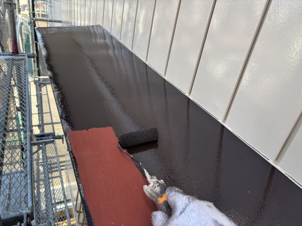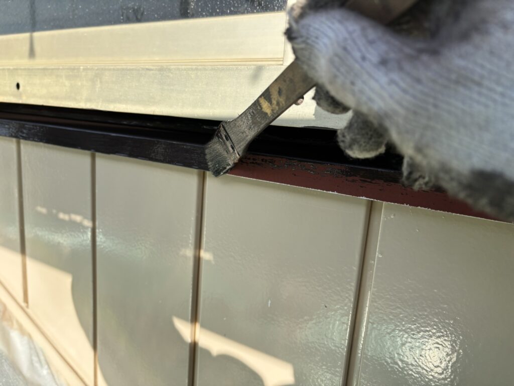 本日(1/28)は庇、雨樋、窓枠などの塗装を行いました。