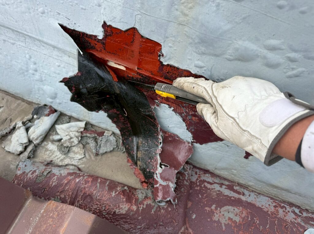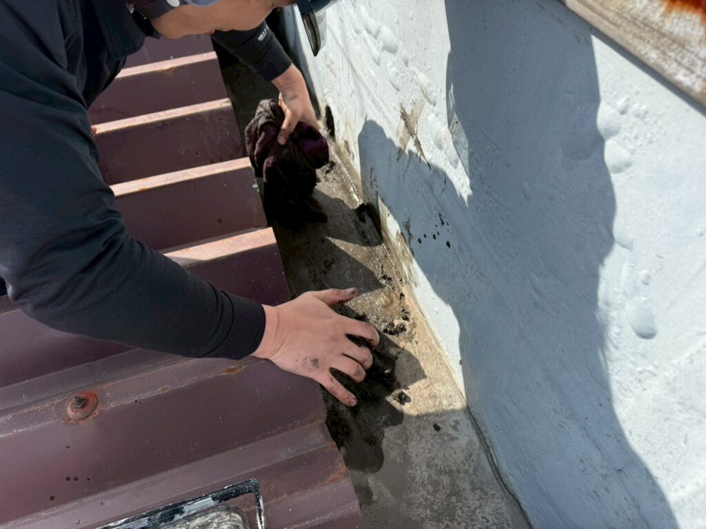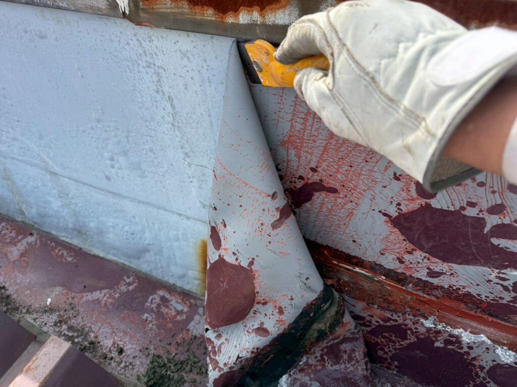 上尾市で行っている倉庫屋根防水工事の現場です。