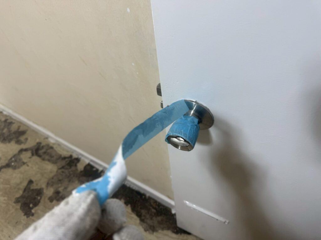 本日も中央区のオフィスビルで行っている塗装作業の続きになります。