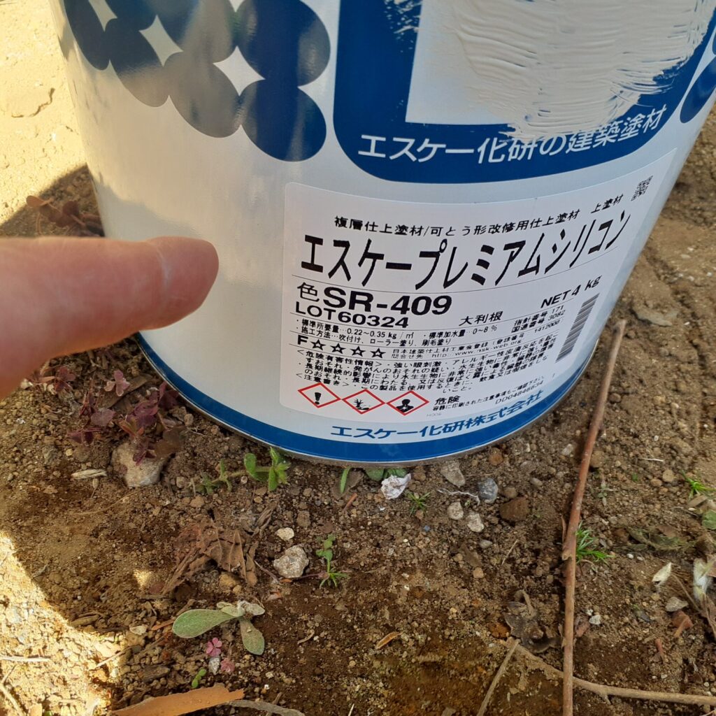 今回も使用する塗料は下塗にSK化研サーフエポ、中塗・上塗にSK化研プレミアムシリコンを使用します。