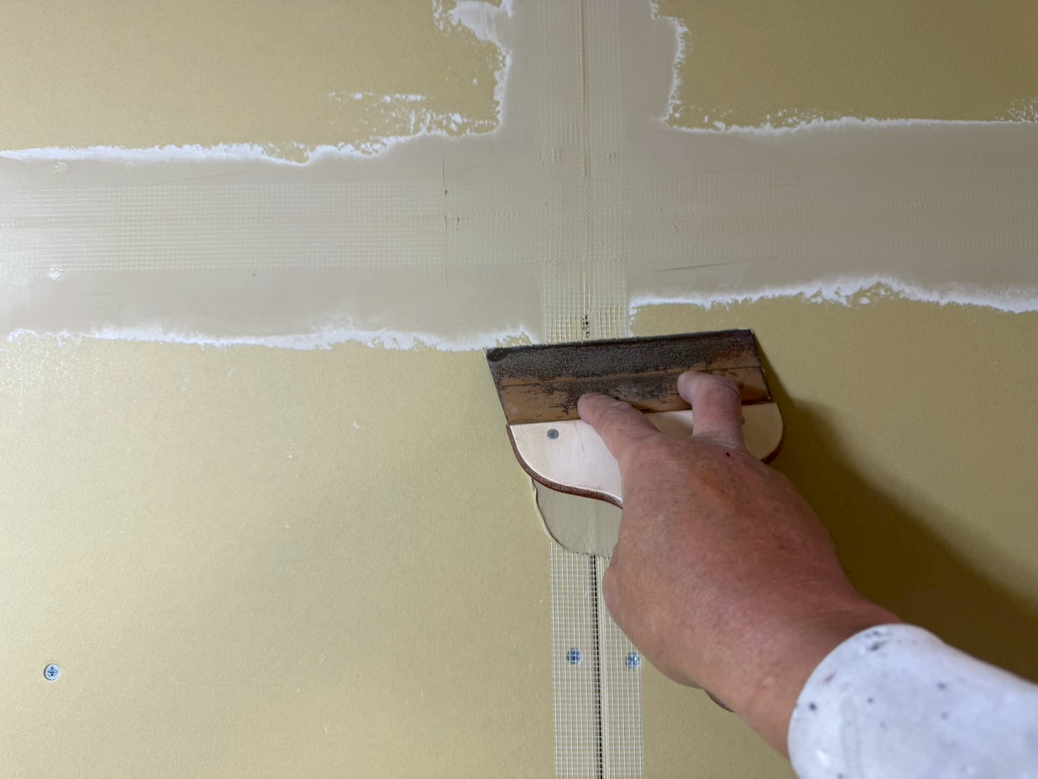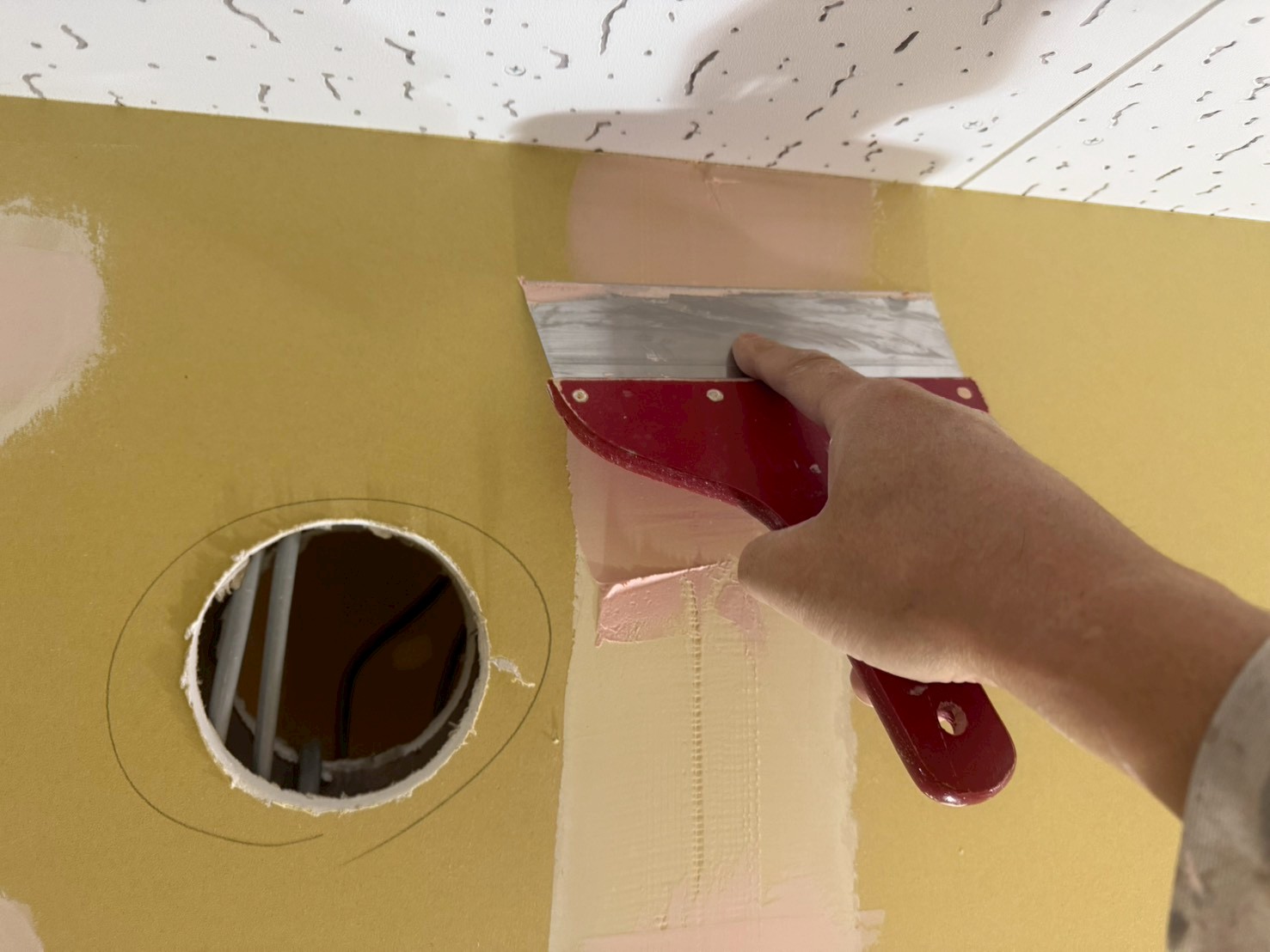 本日から日本橋オフィスの室内塗装作業が始まりました。 本日は下地処理(パテ処理)を行いました。