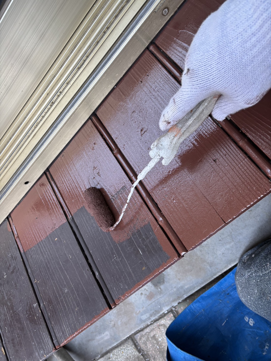 本日は桶川市の外壁塗装を行いました。昨日で高圧洗浄を行い、本日から塗装作業に入っています。本日は木部の塗装を行いました。